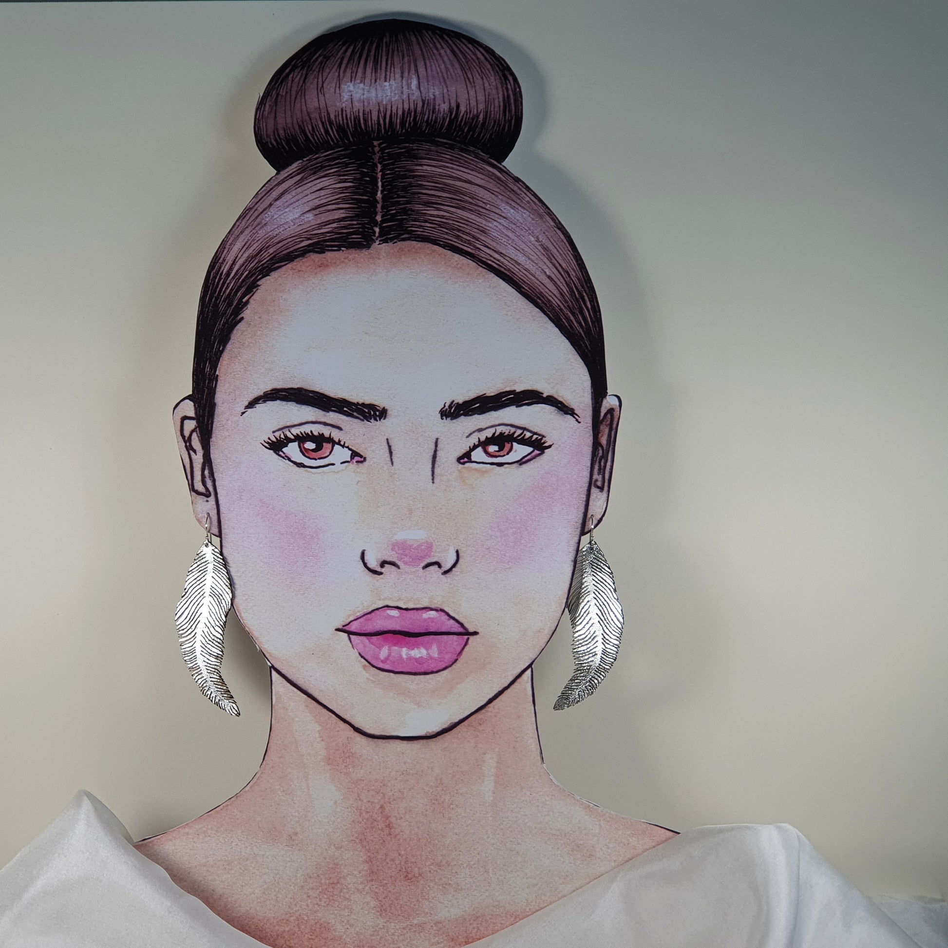 Feather earrings made with fine laser-cut kangaroo leather. These earrings are in metallic silver, which has the appearance of fine intricate metal, without the weight.