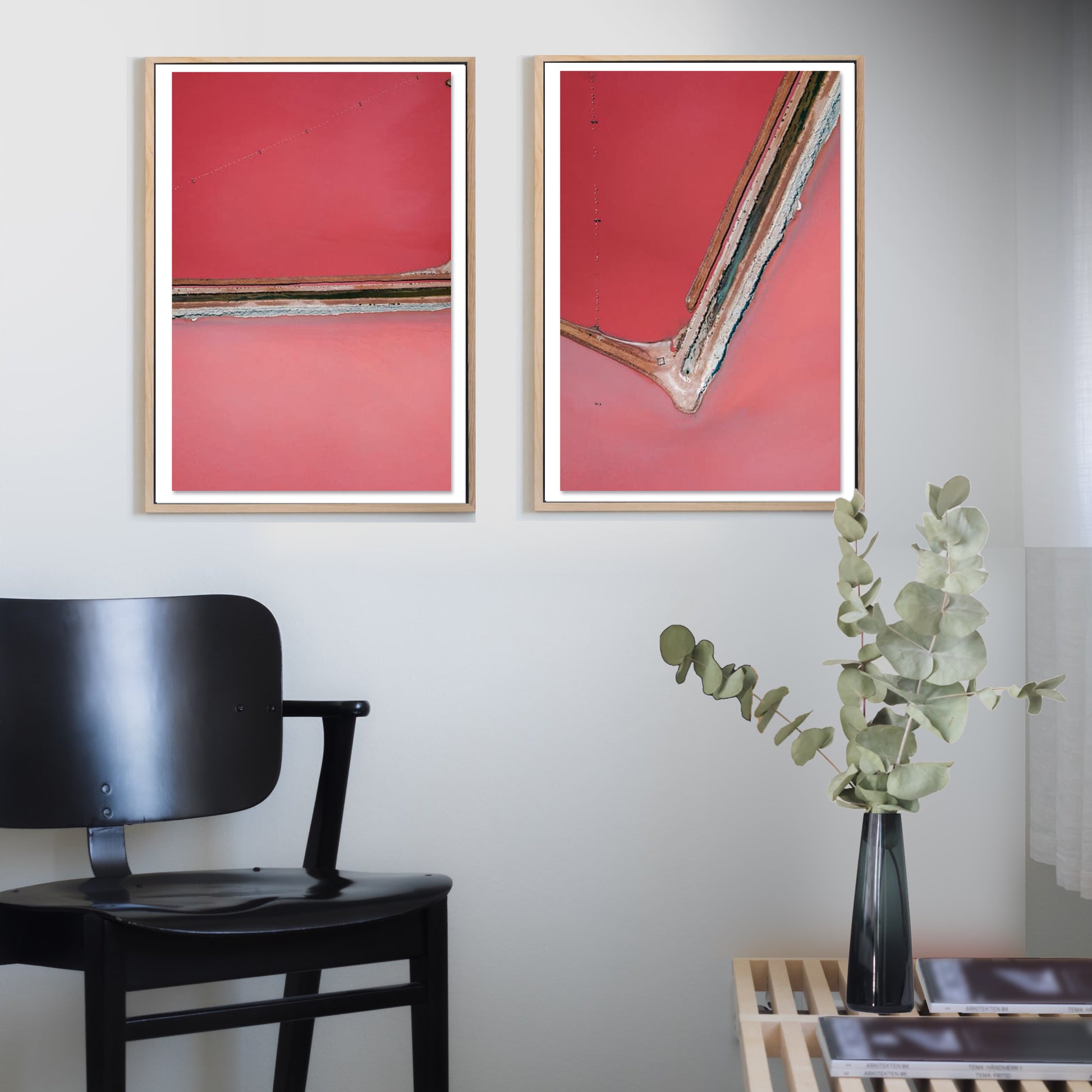 Water in Hutt Lagoon ranges from pink to lilac to red, thanks to the salt content and the colouring pigment, beta-carotene. These photographs, taken from above Hutt Lagoon, depict elements of algae farming on the lake where the pigment is produced.