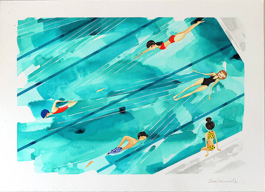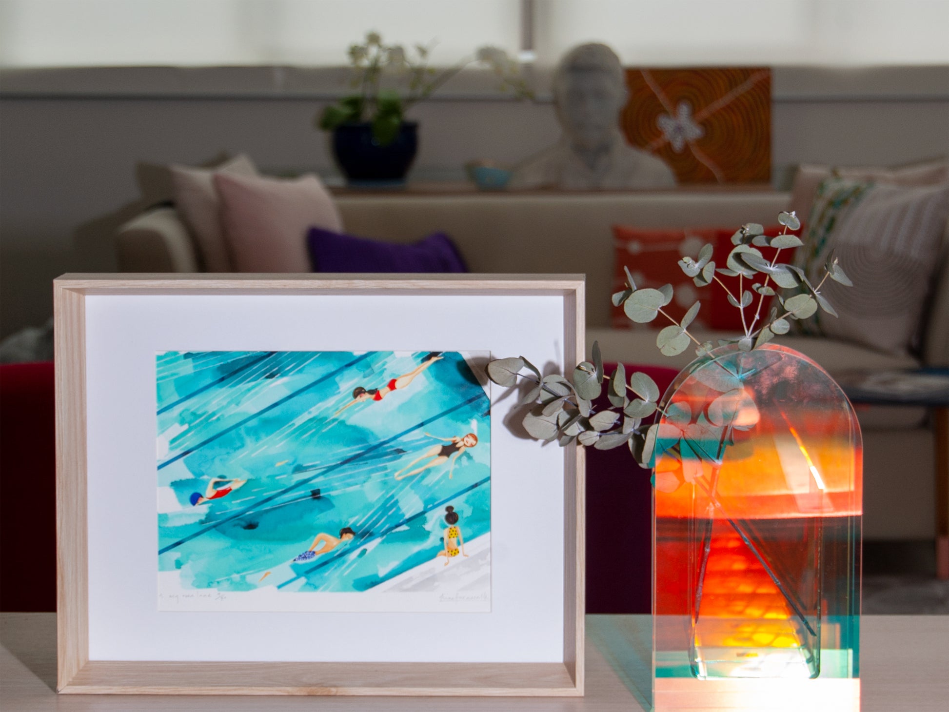 The Artist, Gill Cameron, is an illustrator based in Bondi (Sydney) who is inspired by her coastal environment and local community to create large murals, original artworks, and limited edition prints. Gill uses the spontaneity and fluid nature of watercolour and acrylics to produce intriguing and unique works.