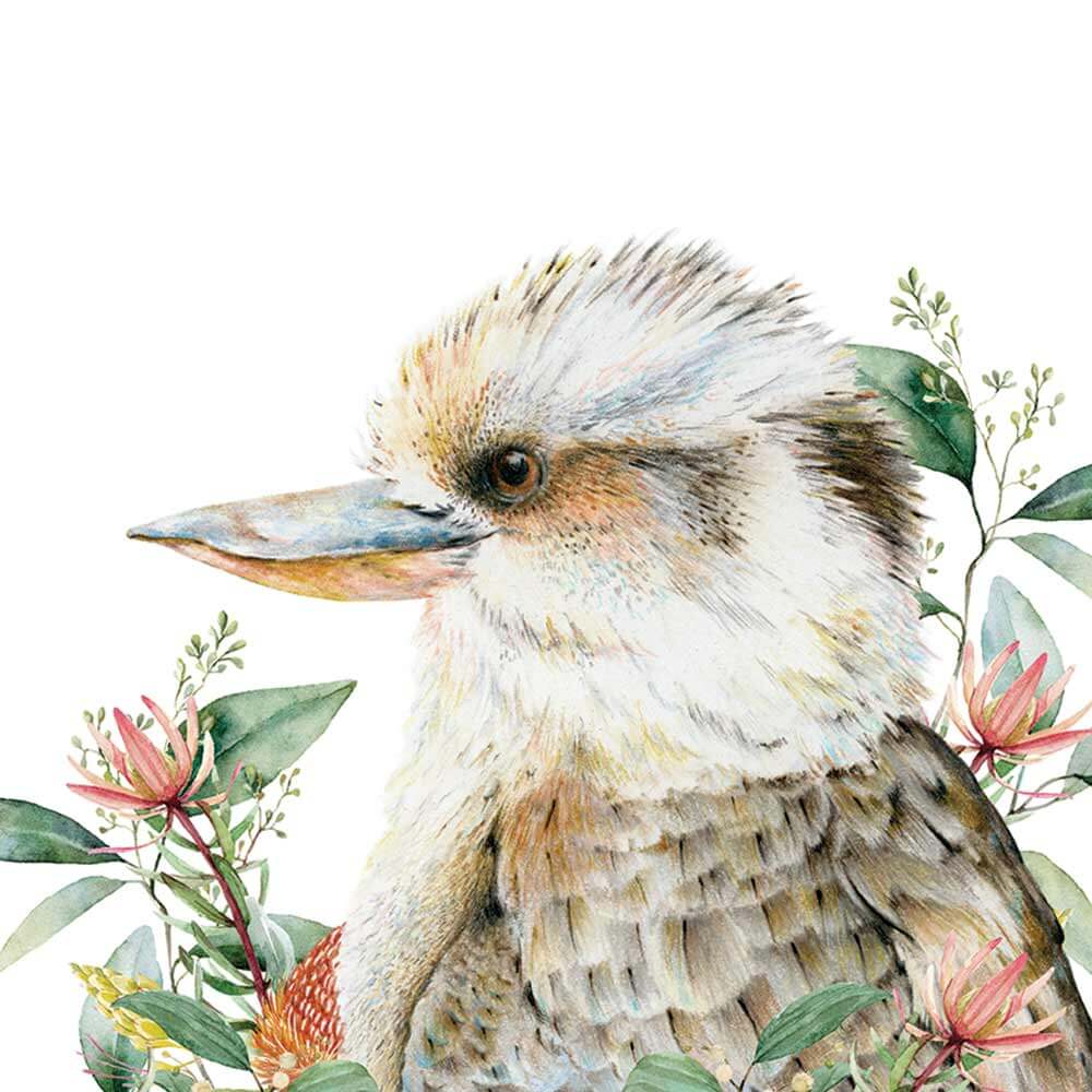 Everybody has a favourite Australian bird (or two or three), and even if the Kookaburra is not yours, you'll know somebody who will love this beautiful specimen, reproduced from a drawing by Sarah Hardy. With its intelligent eye, and lovely, detailed feathers, Kaiya will delight young and old.