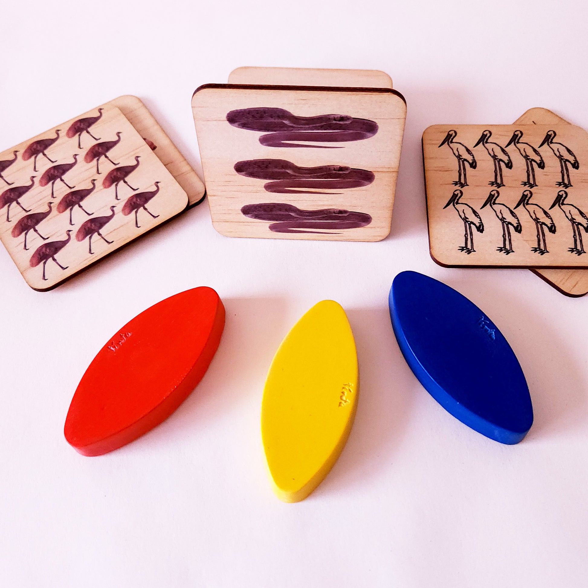 This listing is for the counting tiles only; the Tinta crayons for small hands are available separately.