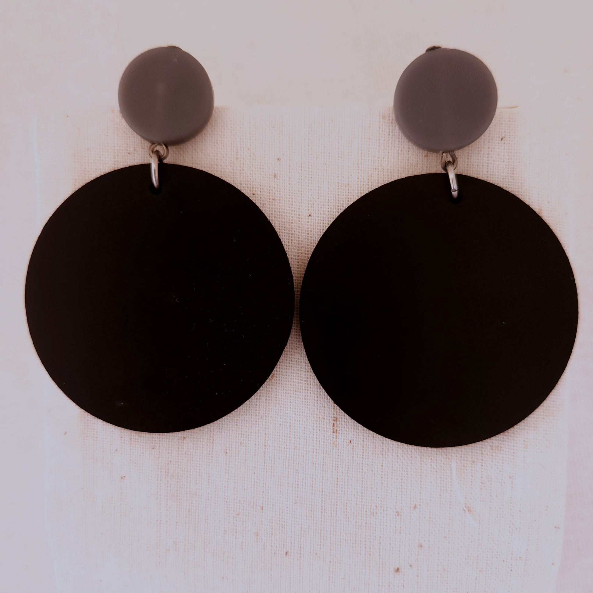 Striking recycled rubber and resin disk earrings in black and grey. Add an edgy style to any outfit with these bold earrings. They're sure to make you feel great. Very light to wear too.