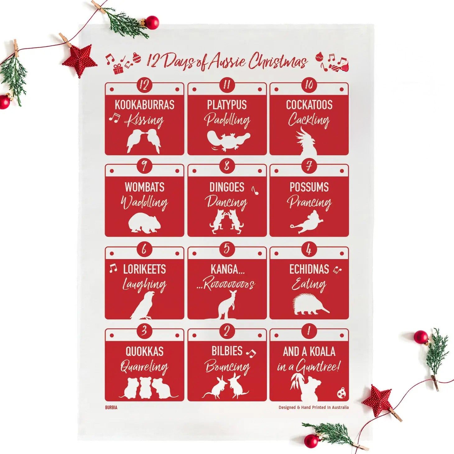 Twelve Days of Australian Christmas tea towel